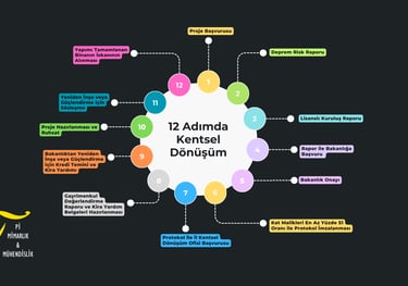 Kentsel dönüşüm süreci, bir binanın deprem riskine karşı güvenli hale getirilmesi amacıyla belirli aşamalardan oluşur. İlk adım, mevcut binanın mimari ve statik projelerinin belediyeden veya tapu müdürlüğünden temin edilmesidir. Bu belgeler hazırlandıktan sonra, bina deprem risk raporu almak için gerekli dokümanlar ile yetkili kentsel dönüşüm kuruluşlarına başvurulur. Bu kuruluş, binada kapsamlı bir teknik inceleme yaparak binanın deprem riski taşıyıp taşımadığını belirten bir rapor hazırlar.